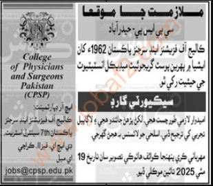 The College of Physicians and Surgeons Pakistan needs security guards to work in Karachi. If you finished Primary, Middle, or Matric, you can apply. These are new jobs 2025 and are great for people who want government jobs 2025.