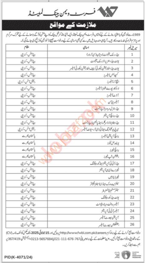 This is a strong opportunity for anyone interested in government bank jobs in Karachi. If you have the required qualifications and want to work in a respected institution, apply today to join First Women Bank Limited and grow your career in the banking sector.