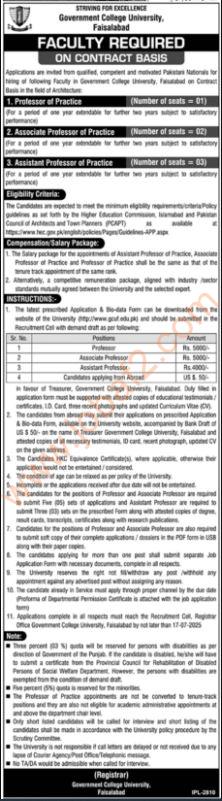 This job description is crafted to help job seekers searching for government teaching jobs in Faisalabad or nearby areas like Narwala Road. Using clear language and relevant keywords such as “Government College University Faisalabad,” “teaching jobs in Faisalabad,” and “government jobs in Punjab,” it ensures visibility on search engines while providing useful information about the position.