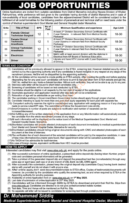 Apply now for these Today new jobs and join the team at Mental Hospital in Mansehra!