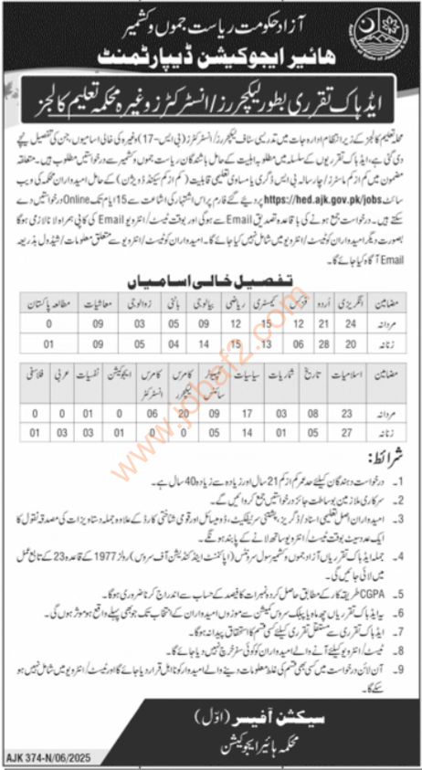 Tagged as: AJK government jobs, Bachelor degree jobs, Education Jobs in Muzaffarabad, Full Time Education Jobs, Government Education Jobs, Government Sector Jobs 2025, Higher Education Department Jobs, Jang Newspaper Jobs, Jobs in Higher Education Department AJK, Latest Government Jobs in AJK, Master degree jobs, MPhil Jobs, Muzaffarabad Jobs 2025, Online Application Jobs, PhD Jobs, Teaching Jobs in AJK