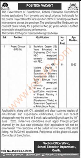 Are you looking for a good government job? The School Education Department has a great job for you! They are hiring a Project Director in Quetta, Balochistan. This is one of the best govt jobs 2025 and it’s full-time. If you want to find jobs near me or want to try for new jobs 2025, this could be the right one for you.