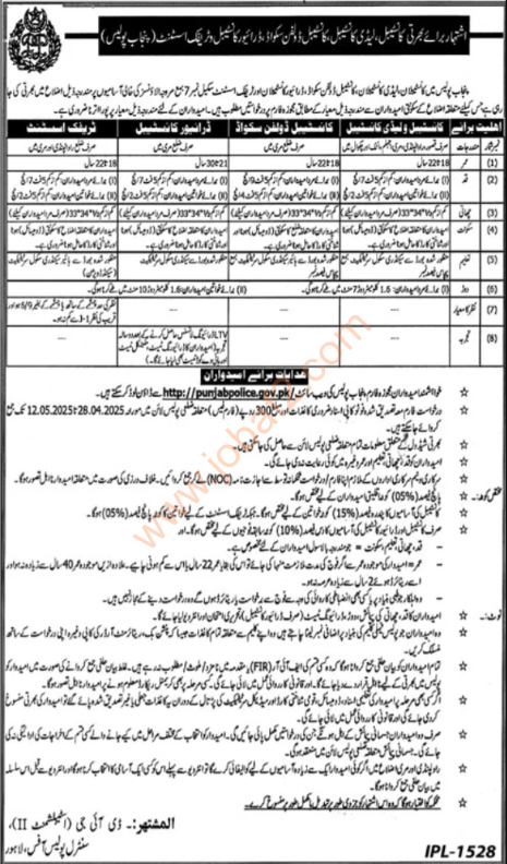 Here’s a list of the different jobs that are available with the Punjab Police Lahore in 2025:
